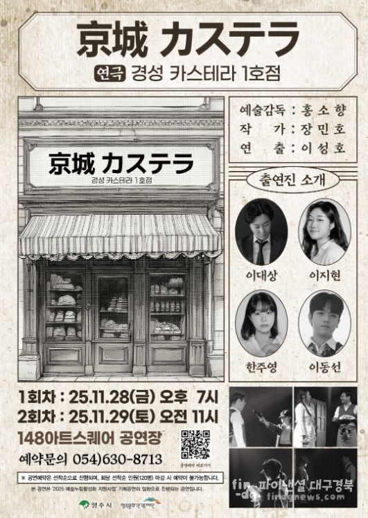 파이낸셜대구경북 기자 | (재)영주문화관광재단은 오는 11월 28일 오후 7시와 11월 29일 오전 11시, 148아트스퀘어 공연장에서 광복 80주년을 기념한 창작연극 '경성 카스테라 1호점'을 선보인다.