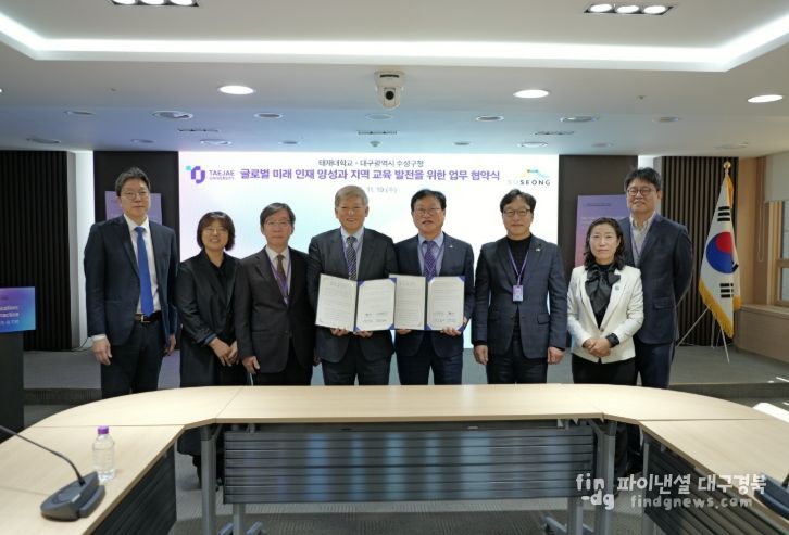 파이낸셜대구경북 김유신 기자 | 대구 수성구는 지난 19일 태재대학교(총장 염재호)와 글로벌 미래 인재 양성 및 지역 교육 발전을 위한 업무 협약(MOU)을 체결하고 상호 협력 체계를 구축했다고 밝혔다.