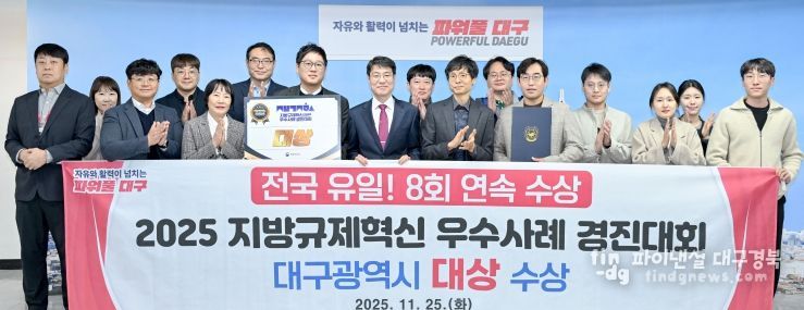 파이낸셜대구경북 김유신 기자 | 대구광역시는 행정안전부가 주관한 ‘2025년 지방규제혁신 우수사례 경진대회’에서 ‘대상’을 수상했다.