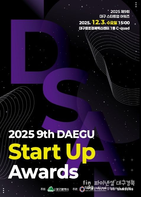 파이낸셜대구경북 기자 | 대구광역시는 12월 3일 오후 3시, 대구창조경제혁신센터 C-quad(1층)에서 ‘제9회 대구스타트업어워즈’를 개최하고, 지역 창업생태계를 빛낸 우수 스타트업 10개사와 창업지원 유공자 2명을 시상한다.