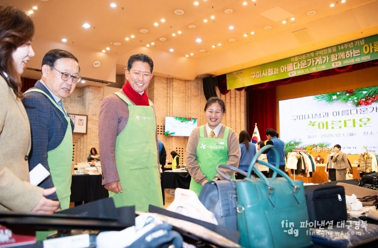 파이낸셜대구경북 기자 | 구미시는 12월 1일 시청 대강당에서 아름다운가게 구미인동점과 함께 ‘아름다운 하루’ 행사를 열어 재사용과 나눔의 가치를 시민과 함께 나눴다.
