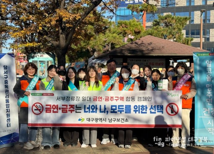 파이낸셜대구경북 김유신 기자 | 대구 남구는 지난 11월 28일, ‘음주폐해예방의 달’을 맞아 서부정류장 일대 금연·금주 구역에서 음주폐해‧흡연예방 캠페인을 실시했다고 밝혔다.