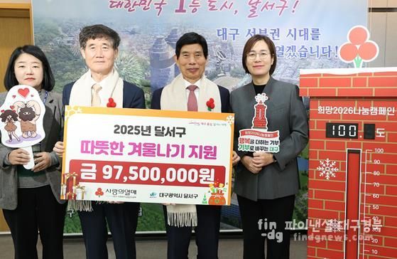 이날 행사에서는 따뜻한 겨울나기 지원사업을 위해 총 9,750만 원의 성금이 달서구에 전달됐으며, 해당 성금은 저소득 취약계층 975세대에 각 10만 원씩 지원될 예정이다.
