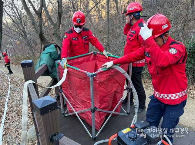 파이낸셜대구경북 기자 | 경산시는 9일 겨울철 산불 조심 기간에 대비하여 산불 전문 예방 진화대를 중심으로 산불 진화 기계화 훈련을 실시했다고 밝혔다. 이번 훈련은 겨울철 춥고 건조한 기상 여건 속에 소규모 산불도 대형화될 우려가 커지는 만큼, 엔진 펌프를 활용한 기계화 진화 시스템의 운용 능력을 숙달하는 한편, 헬기·드론·지휘차 등 진화 자원을 입체적으로 연계한 통합 지휘 체계 운영 능력을 점검하는 데에 초점을 맞췄다.