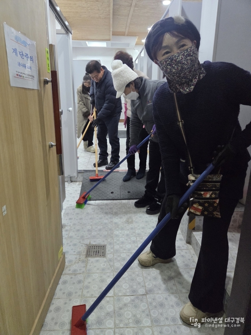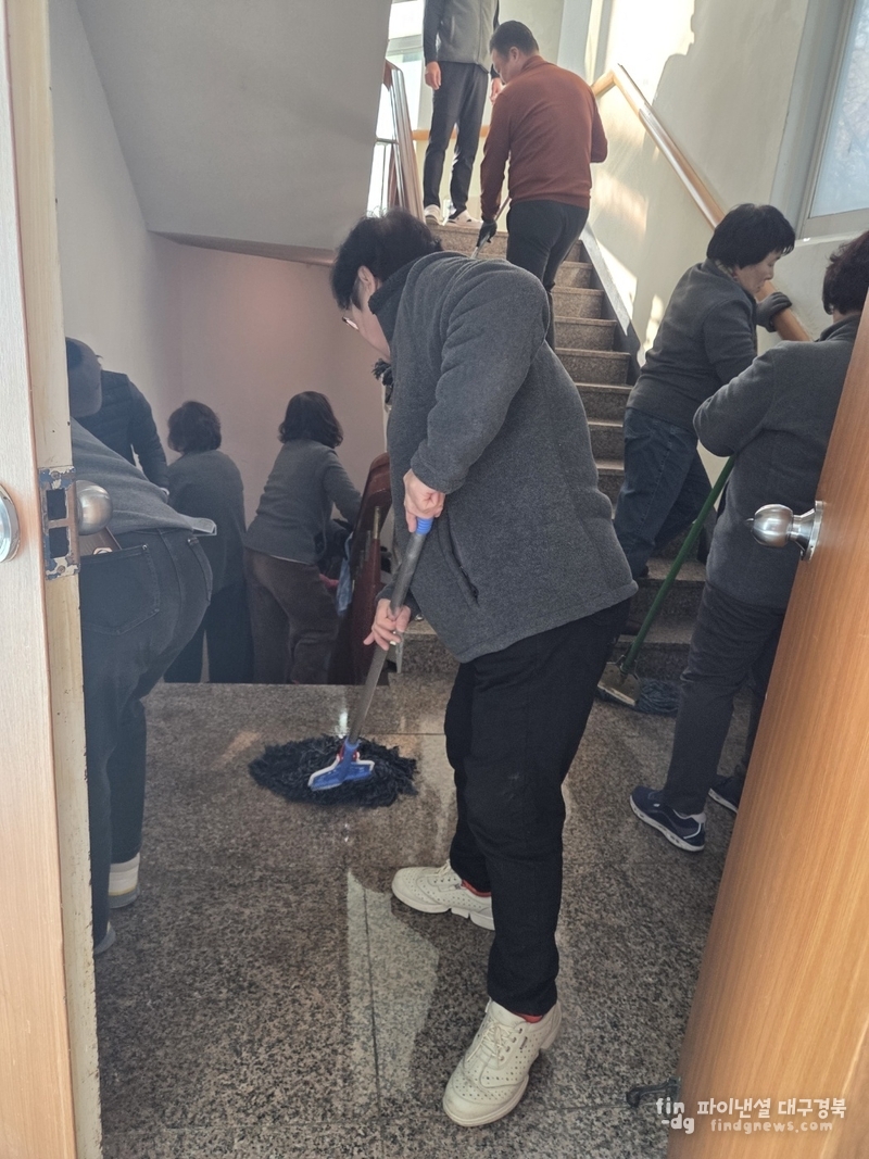 특히 세제를 이용해 묵은 때로 얼룩진 지하 계단을 구석구석 닦아내고, 위생관리가 필수적인 화장실 내부를 꼼꼼하게 소독했다.