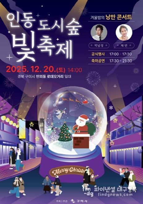 파이낸셜대구경북 기자 | 구미시는 오는 12월 20일 인동로데오거리 일원에서 청춘의 에너지와 음악이 어우러지는 '2025년 인동도시숲빛축제'를 개최한다.