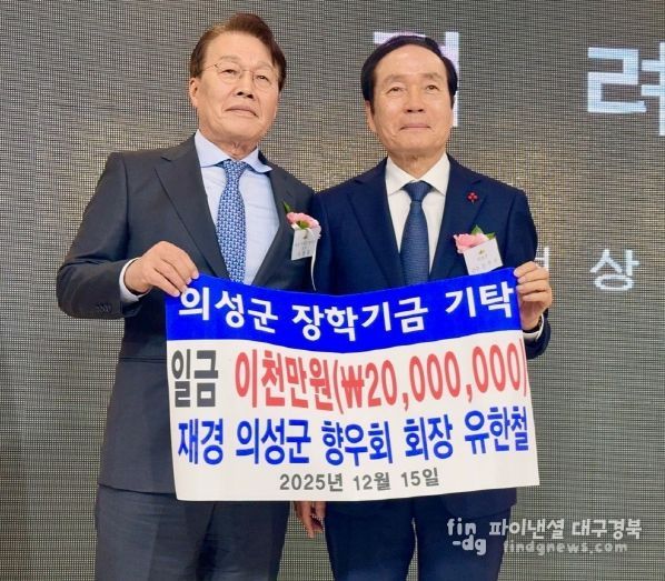 파이낸셜대구경북 기자 | 재단법인 의성군인재육성재단(이사장 김주수 의성군수)은 지난 15일 재경의성군향우회 유한철 회장(서울승합 대표)이 지역 인재 육성을 위해 사용해 달라며 장학금 2천만 원을 의성군에 전달했다고 밝혔다.