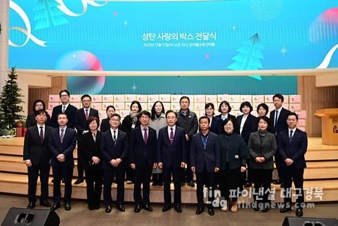 파이낸셜대구경북 김유신 기자 | 반야월교회는 지난 17일, 성탄절을 앞두고 관내 저소득가구와 환경미화 종사자를 위해 성탄박스 1천200상자를 동구청에 기탁했다.