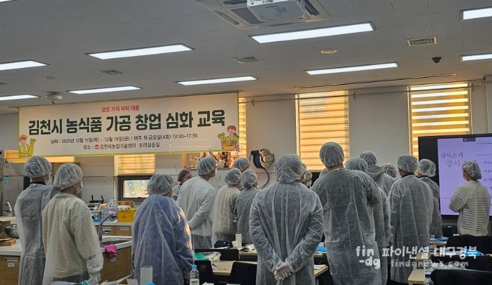파이낸셜대구경북 기자 | 김천시는 12월 19일 오후, 김천시농업기술센터 농촌생활교육관 조리실습실에서 ‘2025년 김천시 농식품 가공 창업 심화 교육’ 수료식을 성황리에 개최했다.