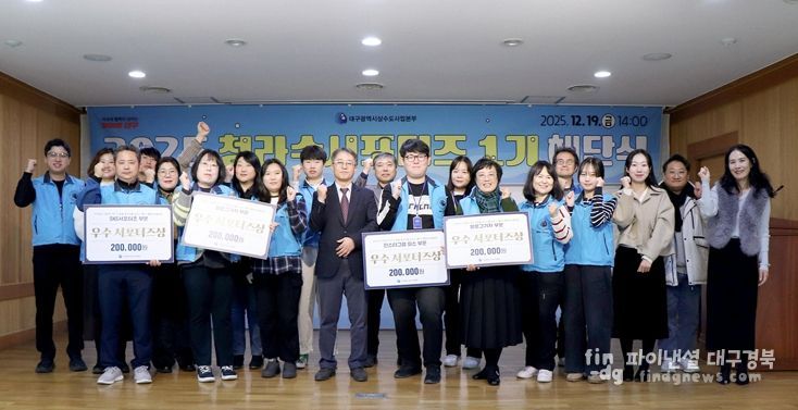파이낸셜대구경북 김유신 기자 | 대구광역시 상수도사업본부는 12월 19일, 올 한 해 대구 수돗물 청라수를 적극적으로 홍보해 온 ‘제1기 청라수 서포터즈’의 해단식을 개최하고, 그간의 노고를 치하하는 시간을 가졌다.