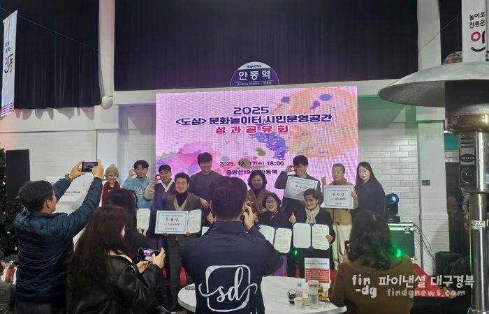 파이낸셜대구경북 기자 | 안동시는 대한민국 문화도시 조성사업의 일환으로, 12월 17일 오후 6시 중앙선1942안동역 문화홀에서 ‘2025 도심 문화놀이터 시민운영공간 성과공유회’를 개최했다.