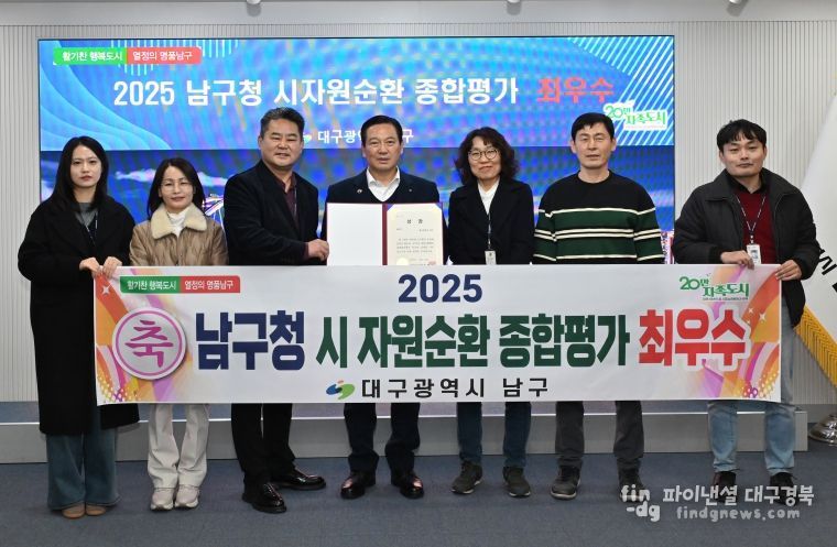 파이낸셜대구경북 김유신 기자 | 대구 남구는 2025 대구시 자원순환행정 종합평가에서 9개 구·군 가운데 ‘최우수’(1위)를 차지하며, 자원순환 선도 도시 명품 남구의 위엄을 알렸다.