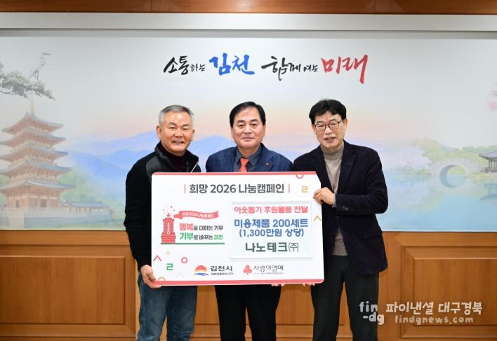 파이낸셜대구경북 기자 | 김천시는 지난 23일, 나노테크㈜(대표 김정헌)으로부터 어려운 이웃을 위한 미용 제품 200상자(1,300만 원 상당)를 전달받았다고 밝혔다.