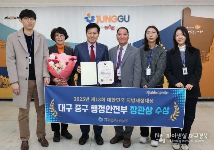 파이낸셜대구경북 김유신 기자 | 대구 중구는 행정안전부가 주관한 ‘2025년 제18회 대한민국 지방재정대상’에서 우수사례로 선정돼 행정안전부 장관상을 받고, 특별교부세 1억 원을 확보했다.