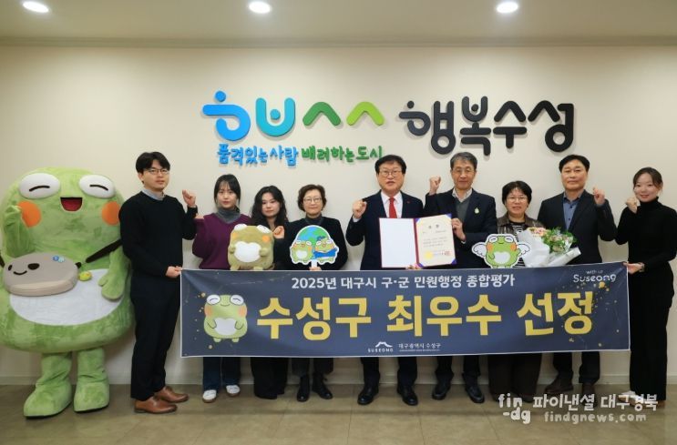 파이낸셜대구경북 김유신 기자 | 대구 수성구는 대구시가 주관한 ‘2025년 구·군 민원행정 종합평가’에서 최우수 기관으로 선정됐다고 24일 밝혔다.