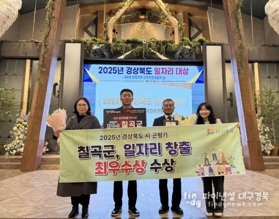 파이낸셜대구경북 기자 | 칠곡군은 경상북도가 실시한 2025년 시군 일자리창출 추진실적 평가에서 종합실적 부문 최우수 시군으로 선정되는 영예를 안았다.