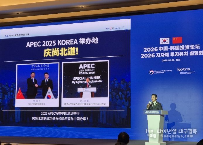 파이낸셜대구경북 기자 | 경상북도는 6일 중국 베이징에서 열린 산업통상부 주관 지자체 투자유치 설명회에 참가해 중국 기업과 투자자를 대상으로 경상북도의 투자환경과 미래 협력 전략을 집중적으로 소개했다.
