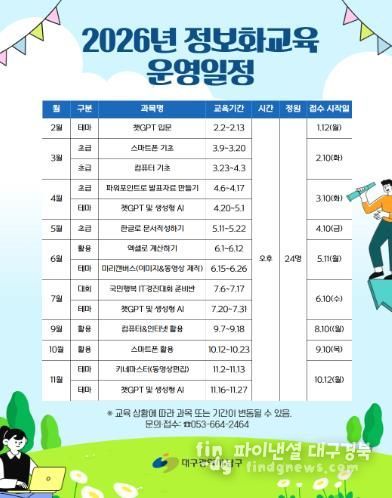 파이낸셜대구경북 김유신 기자 | 대구 남구는 구민을 대상으로 2026년 정보화교육을 실시한다고 밝혔다.
