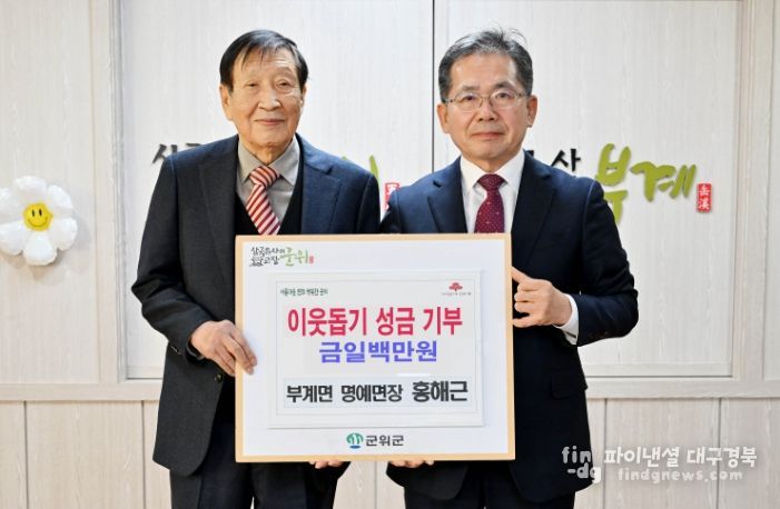 한편, 홍해근 명예면장은 부계면 남산리 출신으로 2023년부터 매년 어려운 이웃들을 위해 성금을 꾸준히 기부하여 지역 사회 기부 문화 확산에 귀감이 되고 있다.