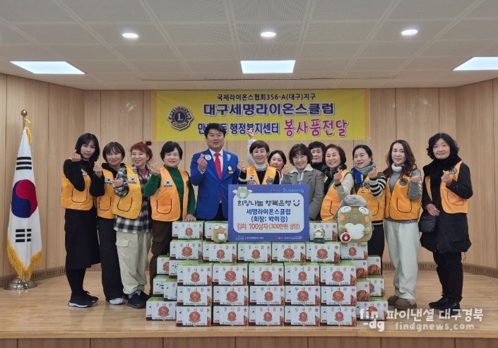 안기영 만촌1동장은 “수년간 변함없이 후원을 이어오고 있는 세명라이온스클럽에 깊이 감사드린다”며 “전해주신 물품은 도움이 꼭 필요한 이웃들에게 소중히 전달하겠다”고 전했다.