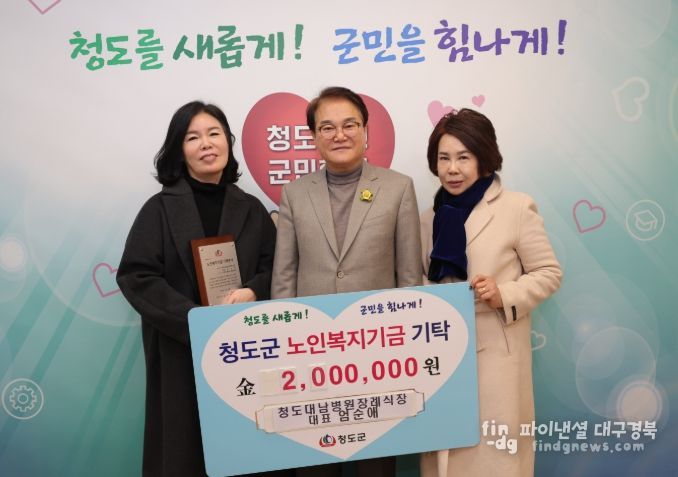 김하수 청도군수는 “지속적인 기탁과 관심으로 노인복지기금에 힘을 보태주신 데 깊이 감사드린다”며 “군민 여러분의 따뜻한 참여가 어르신들의 복지 향상에 큰 밑거름이 되는 만큼, 앞으로도 더 많은 어르신들에게 실질적인 도움이 될 수 있도록 최선을 다하겠다”고 밝혔다.