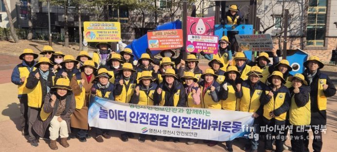 파이낸셜대구경북 기자 | 영천시 안전보안관 단체는 14일 중앙동에 위치한 문내·외 제1공원에서 ‘안전한바퀴 캠페인’의 일환으로 놀이터 안전점검 활동을 실시했다.