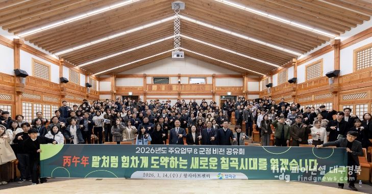 파이낸셜대구경북 기자 | 칠곡군은 지난 14일 향사아트센터에서 직원 200여 명이 참석한 가운데 ‘2026년도 주요업무 · 군정 비전 공유회’를 개최하여 부서별 비전과 핵심사업을 공유하고 소통하는 시간을 가졌다.