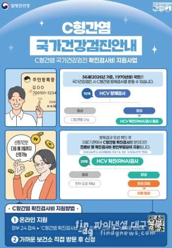 파이낸셜대구경북 기자 | 의성군은 2026년 56세 군민을 대상으로 국가건강검진 C형간염 항체 양성자 확진검사비 지원사업을 종합병원급 이상 의료기관까지 확대 시행한다고 밝혔다.