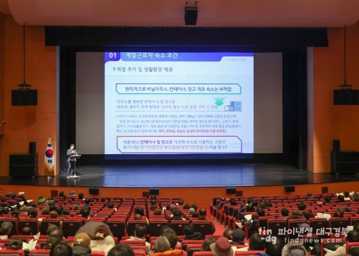 파이낸셜대구경북 기자 | 성주군은 1월 27일 문화예술회관 대공연장에서 농촌 인력난 해소와 안정적인 계절근로자 프로그램 운영을 위해 『`26년 상반기 외국인 계절근로자 고용주 사전교육』을 실시했으며. 이 날 교육장에는 계절근로자 고용주를 포함한 배우자 등 1,200여명이 참석했다.