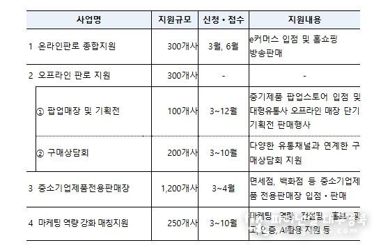이번 사업의 총 지원 규모는 141억 7천만 원이며, 주요 지원 프로그램은 ①온라인 판로지원, ②오프라인 판로지원, ③중소기업제품 전용판매장 운영, ④마케팅 역량강화 프로그램 등이다.