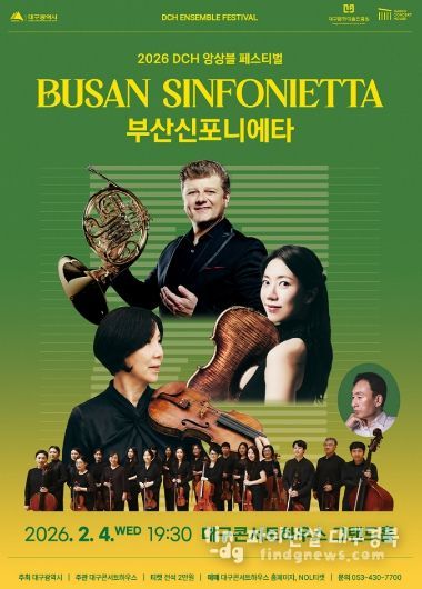 파이낸셜대구경북 김유신 기자 | 대구콘서트하우스가 주최하는 2026 DCH 앙상블 페스티벌이 오는 2월 4일 저녁 7시 30분, 대구콘서트하우스 그랜드홀에서 부산신포니에타의 개막 공연과 함께 본격적인 막을 올린다.