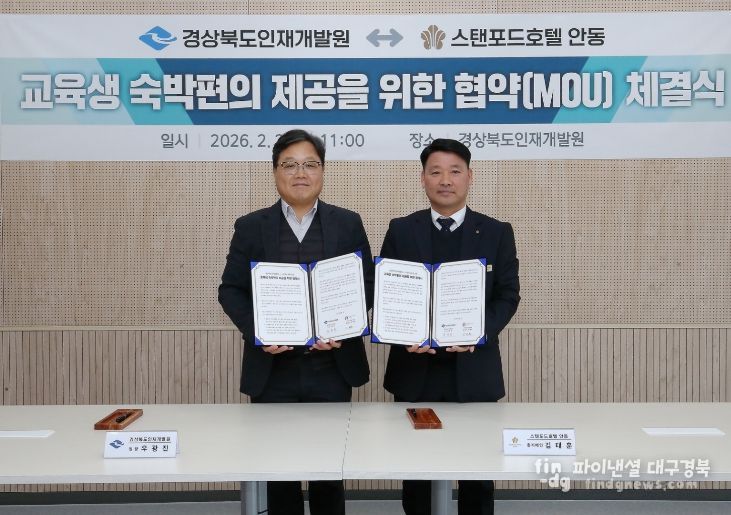 지난해 8월 인재개발원이 도청 신도시로 이전함에 따라 교육생 수요가 몰리며 숙소 예약의 번거로움과 비용 문제가 계속 제기돼 왔다는 점에서, 이번 협약은 더욱 큰 의미를 갖는다.