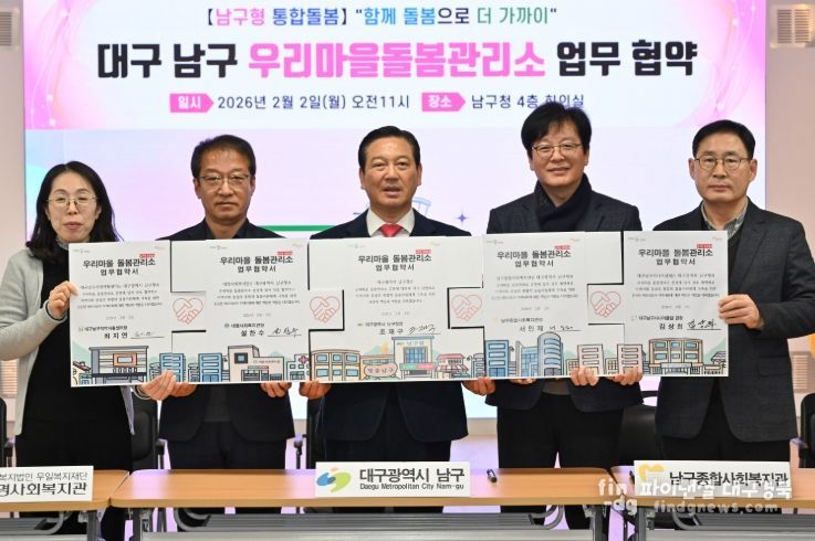 파이낸셜대구경북 김유신 기자 | 대구 남구는 지난 2일 남구 특화사업인 우리마을돌봄관리소 사업 업무협약을 체결했다.