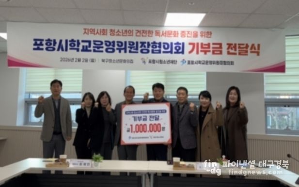 최제민 포항시청소년재단 대표이사는 “지역사회 청소년들을 위해 뜻을 모아주신 포항시학교운영위원장협의회에 깊이 감사드린다”며 “이번 기부는 청소년들의 학습 역량 향상과 건전한 독서문화 형성에 큰 도움이 될 것으로 기대되며, 청소년들의 건강한 성장과 꿈을 지원하는 데 소중히 사용하겠다”고 말했다.