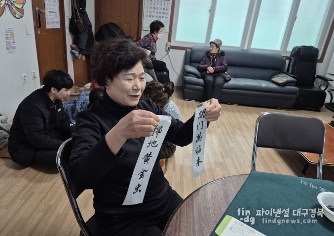 점촌3동에서는 오전과 오후에 걸쳐 프로그램을 운영하며 마을 곳곳에 빠르게 복(福)바람을 전했다. 오전 10시에는 7통 정화노인정, 오후 2시에는 6통 마을회관에서 각각 행사가 진행됐으며 총 30여 명의 주민이 방문해 정성 어린 글귀를 받아가는 등 성황을 이뤘다.