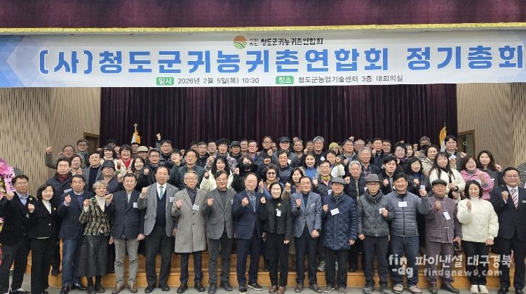 이날 정기총회에는 청도군 내 귀농·귀촌인을 비롯한 관계자 등 약 100명이 참석한 가운데, 2025년도 주요 사업 추진 성과와 결산 보고, 2026년도 사업계획 심의·의결 순으로 진행됐다. 아울러 귀농·귀촌인의 안정적인 정착과 지역 공동체 활성화를 위한 다양한 의견을 나누는 시간도 마련됐다.