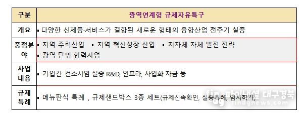 파이낸셜대구경북 기자 | 중소벤처기업부는 6일 비수도권 광역자치단체를 대상으로 ’26년도 ‘광역연계형 규제자유특구’의 신규 지정을 위한 특구 후보과제를 공모한다고 밝혔다.