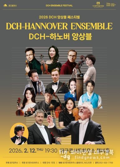 파이낸셜대구경북 김유신 기자 | 대구콘서트하우스는 ‘2026 DCH 앙상블 페스티벌’의 일환으로, 독일 하노버와 대구의 대표 연주자들이 함께하는 ‘DCH-하노버 앙상블’ 공연을 오는 2월 12일 오후 7시 30분, 대구콘서트하우스 챔버홀에서 개최한다.