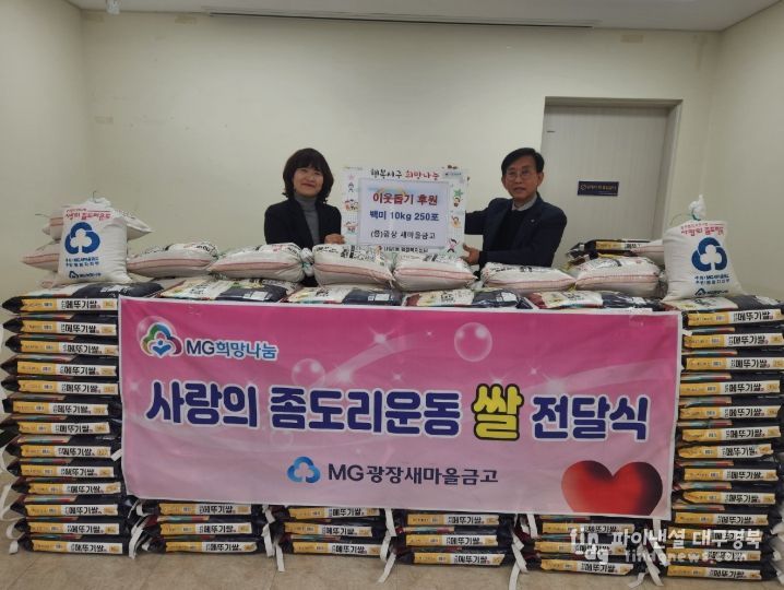 파이낸셜대구경북 김유신 기자 | 대구 서구 내당1동 광장새마을금고(이사장 전진승)는 지난 5일 설 명절을 맞아 좀도리 운동을 통해 마련된 쌀 10kg 250포를 내당1동 관내 취약계층을 위해 기탁했다.