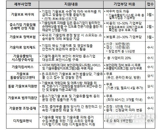 사업별 자세한 내용은 기술보호 통합 포털 기술보호울타리에서 확인할 수 있다.