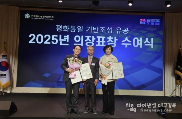 이날 수여식에서 민주평통 의장인 이재명 대통령을 대신하여 배용한 민주평통 경북지역회의 부의장이 표창을 시상했다.