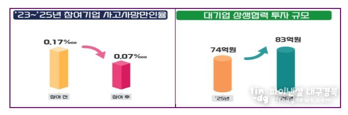 올해는 대기업 220곳이 중소기업 3,160곳과 함께 참여한다. 상생협력 투자 금액은 지난해보다 11.3%(74→83억 원) 증가할 예정이고, 사망·중상해 재해가 발생한 고위험 협력업체, 거래관계가 없는 지역 중소기업 등 안전관리 손길이 필요한 분야에 대한 지원을 강화한다.