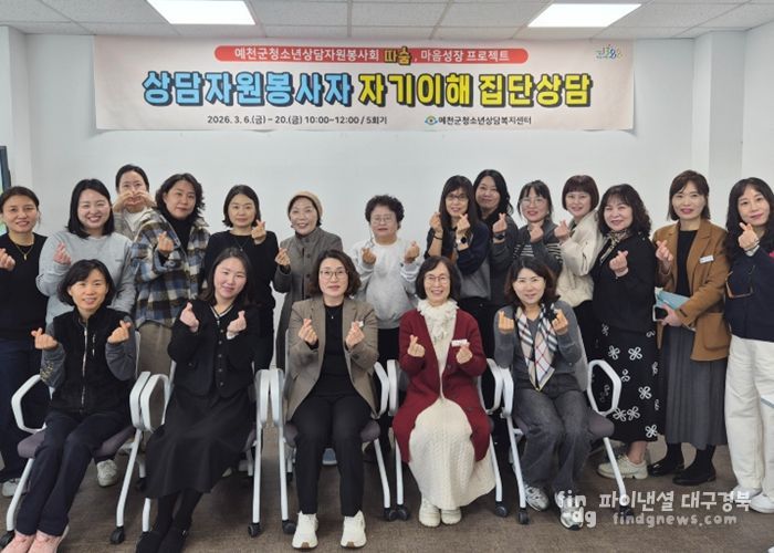 파이낸셜대구경북 기자 | 예천군은 예천군청소년상담자원봉사자의 전문성 향상과 심리적 성장을 지원하기 위해 '상담자원봉사자 마음성장 프로젝트 집단상담'을 운영한다고 밝혔다.