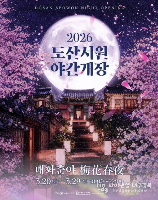 안동시는 오는 3월 20일부터 29일까지 10일간 도산서원 일원에서 ‘도산서원 야간개장’을 개최한다. 이번 행사는 매일 저녁 6시부터 밤 10시까지 운영되며, 입장료는 무료다.