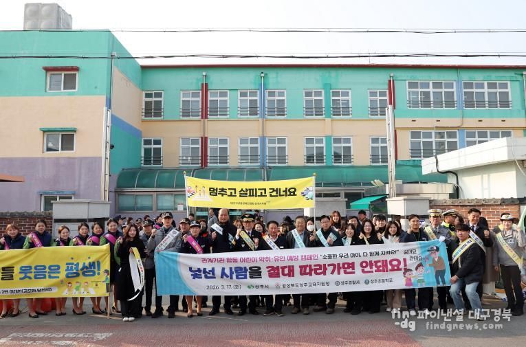 이번 캠페인은 상주시청과 경상북도상주교육지원청, 상주경찰서, 상주시녹색어머니연합회 등 총 50여 명의 관계기관이 함께 참여하며 아동 대상 범죄에 선제적으로 대응하고 안전한 등하굣길 조성을 위한 취지로 마련됐다.