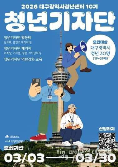 파이낸셜대구경북 김유신 기자 | 대구광역시는 지역 청년정책과 청년 활동의 현장을 청년의 시각에서 취재하고 전달할 ‘제10기 청년기자단’을 오는 3월 30일까지 모집한다.