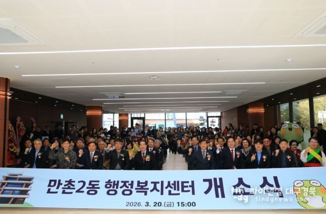정은경 만촌2동장은 “만촌2동 신청사가 주민들이 편안하게 찾고 머무르는 소통과 문화의 공간으로 거듭나길 바란다”며 “앞으로도 주민과 함께하는 열린 행정을 통해 더욱 살기 좋은 만촌2동을 만들어 나가겠다”고 말했다.