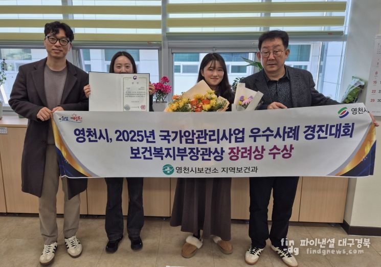 파이낸셜대구경북 기자 | 영천시보건소는 지난 20일 칠곡 경북대병원에서 열린 ‘제19회 암예방의 날 기념식’에서 ‘2025년 국가암관리사업 우수사례 경진대회’ 보건복지부장관상(장려상)을 수상했다고 밝혔다.
