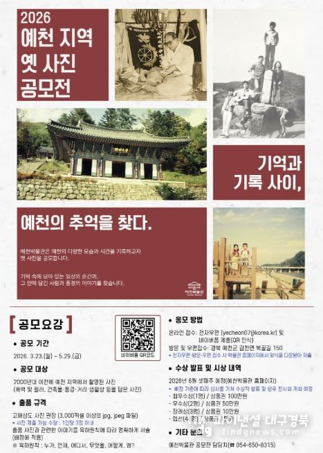 파이낸셜대구경북 기자 | 예천박물관은 지역의 역사와 생활상을 담은 기록을 수집·공유하기 위한 ‘2026 예천 지역 옛 사진 공모전 – 기억과 기록 사이, 예천의 추억을 찾다’ 공모전을 5월 29일까지 개최한다.