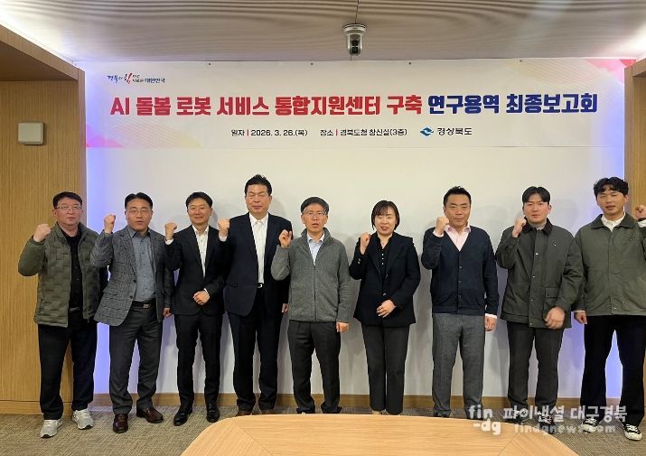 파이낸셜대구경북 기자 | 경상북도는 3월 26일 도청 창신실에서 ‘AI 돌봄 로봇 서비스 통합지원센터 구축 연구용역’ 최종보고회를 개최하고, AI 기반 돌봄 서비스 확산을 위한 정책 방향을 논의했다.